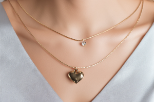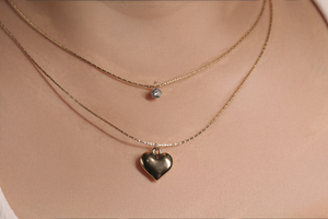 A minimal gold duo necklace tracing the path from sparkle to heart.