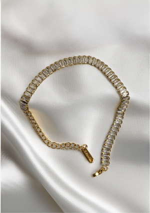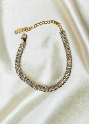 Gold-plated bracelet with shimmering clear baguette crystals, perfect for both daily wear and evening looks.