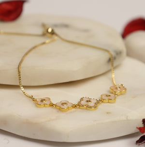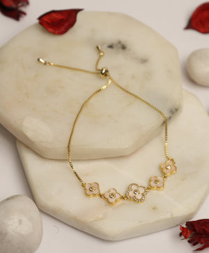 Rose gold-plated bracelet with enamel clover motifs, each centered with sparkling crystals.