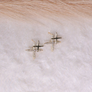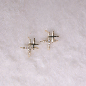 These dazzling earrings feature intersecting bars adorned with crystals, forming a radiant starburst-like cross that exudes cosmic charm.