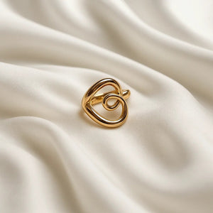 A sleek gold band shaped into a continuous swirl pattern for a contemporary statement style.