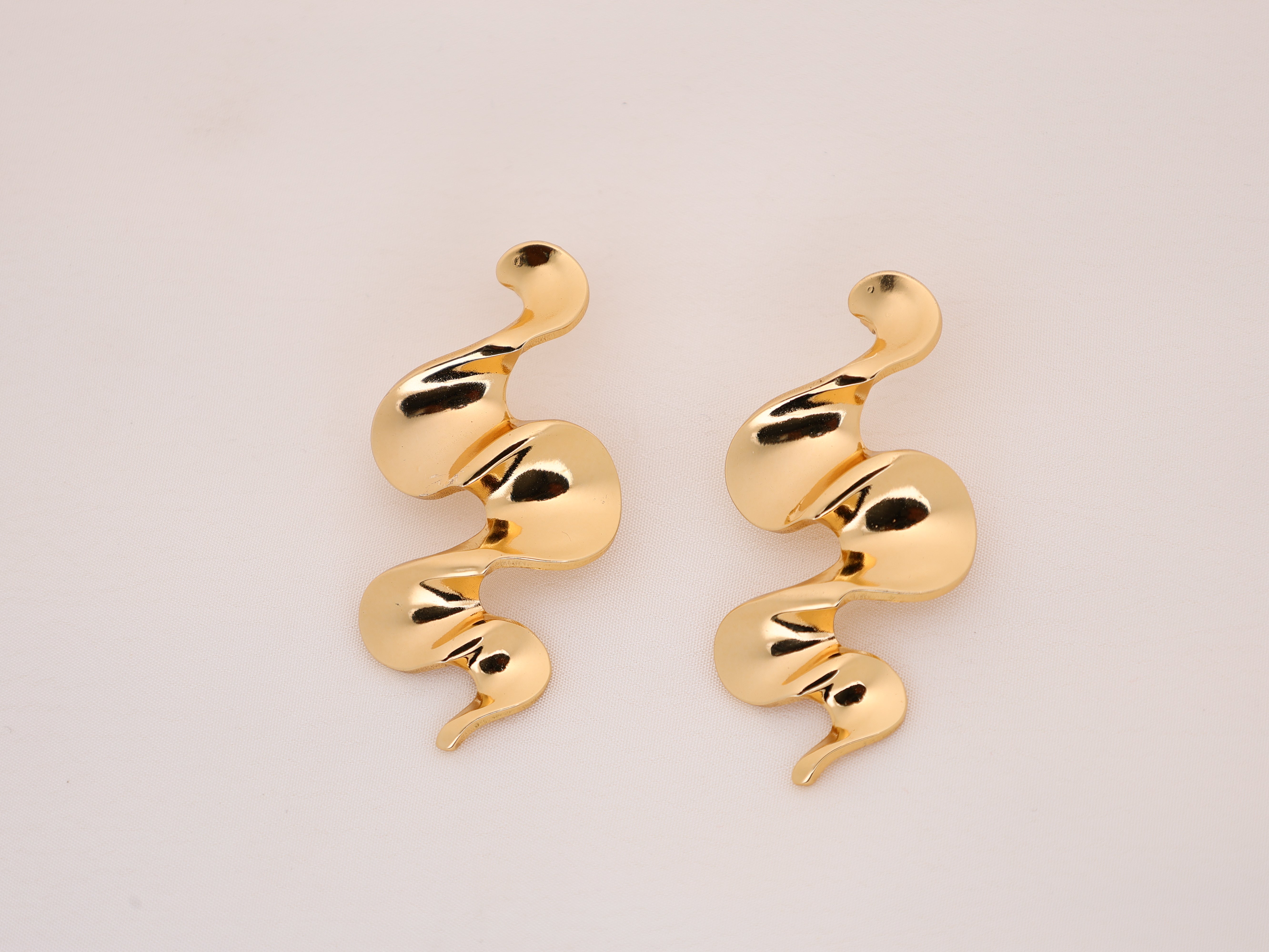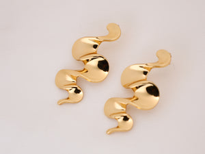 Designed to resemble molten metal in motion, these gold-plated earrings feature smooth curves and a striking sculptural shape. Lightweight yet statement-worthy, they bring a modern edge to minimal and elevated outfits alike.