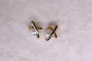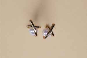Sleek gold arcs wrap around pristine Big pearls, blending timeless elegance with modern artistry