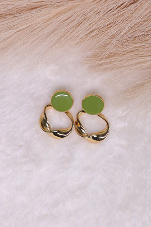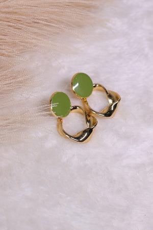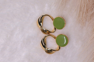 A modern twist of gold meets earthy elegance with olive green enamel discs set in sculptural, open-circle gold frames.