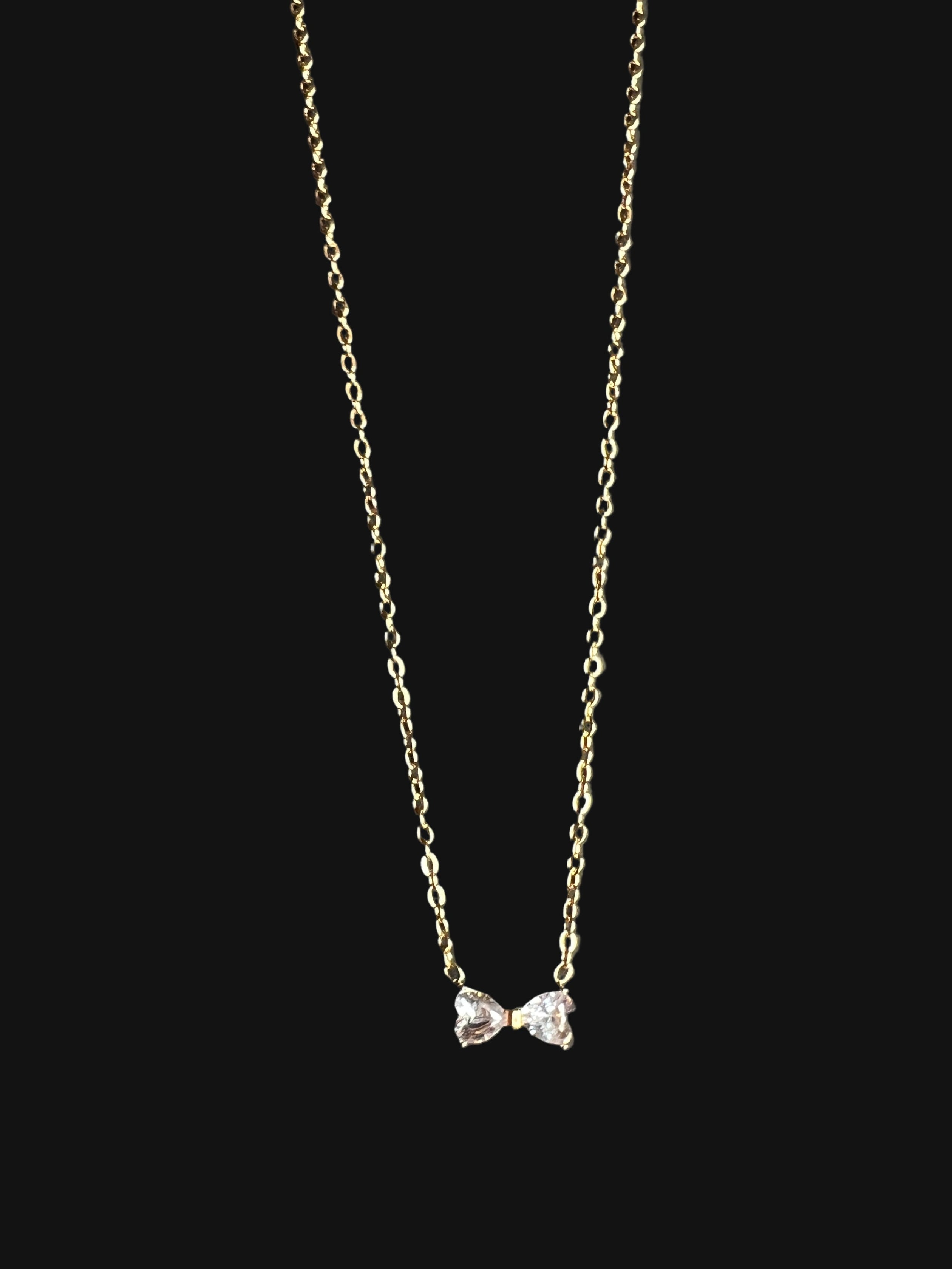 Gold-plated delicate chain with a tiny bow pendant accented by American diamonds for a chic everyday look.