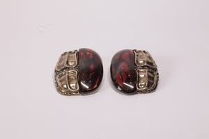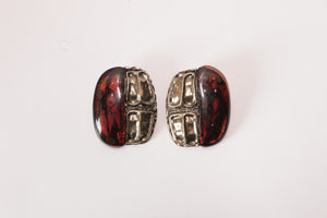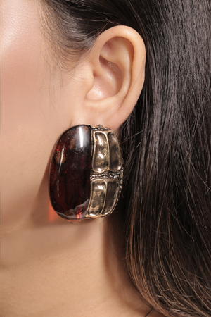 Deep maroon resin stones paired with textured gold mosaic accents create a bold, vintage-inspired statement look