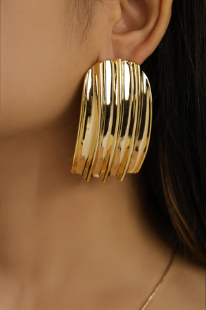 Gold-plated earrings with a bold ribbed dome design, standing tall for a striking statement look. Length - approximately 3 inches.