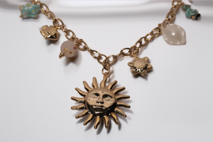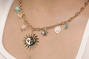Layered charm necklace blending celestial and earthy motifs for a bohemian-inspired aesthetic