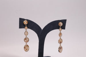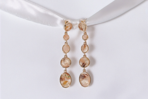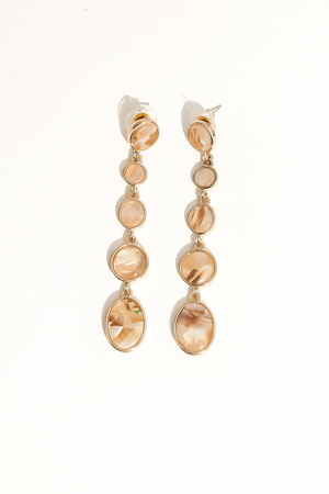 Graceful drop earrings adorned with cascading mother of pearl stones in oval and round shapes, set in gold for a timeless, ethereal charm.