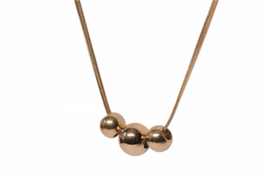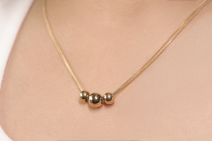 Simple and chic—three bold round beads resting on a slim yet sturdy metallic chain.