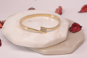A chic, minimal bracelet in lustrous gold, finished with a delicate crystal highlight at the center designed for urban woman