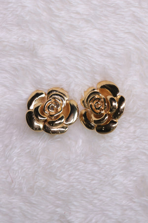 Intricately molded in a rose silhouette, these glossy gold earrings capture the soft curves and folds of real petals in a striking stud design